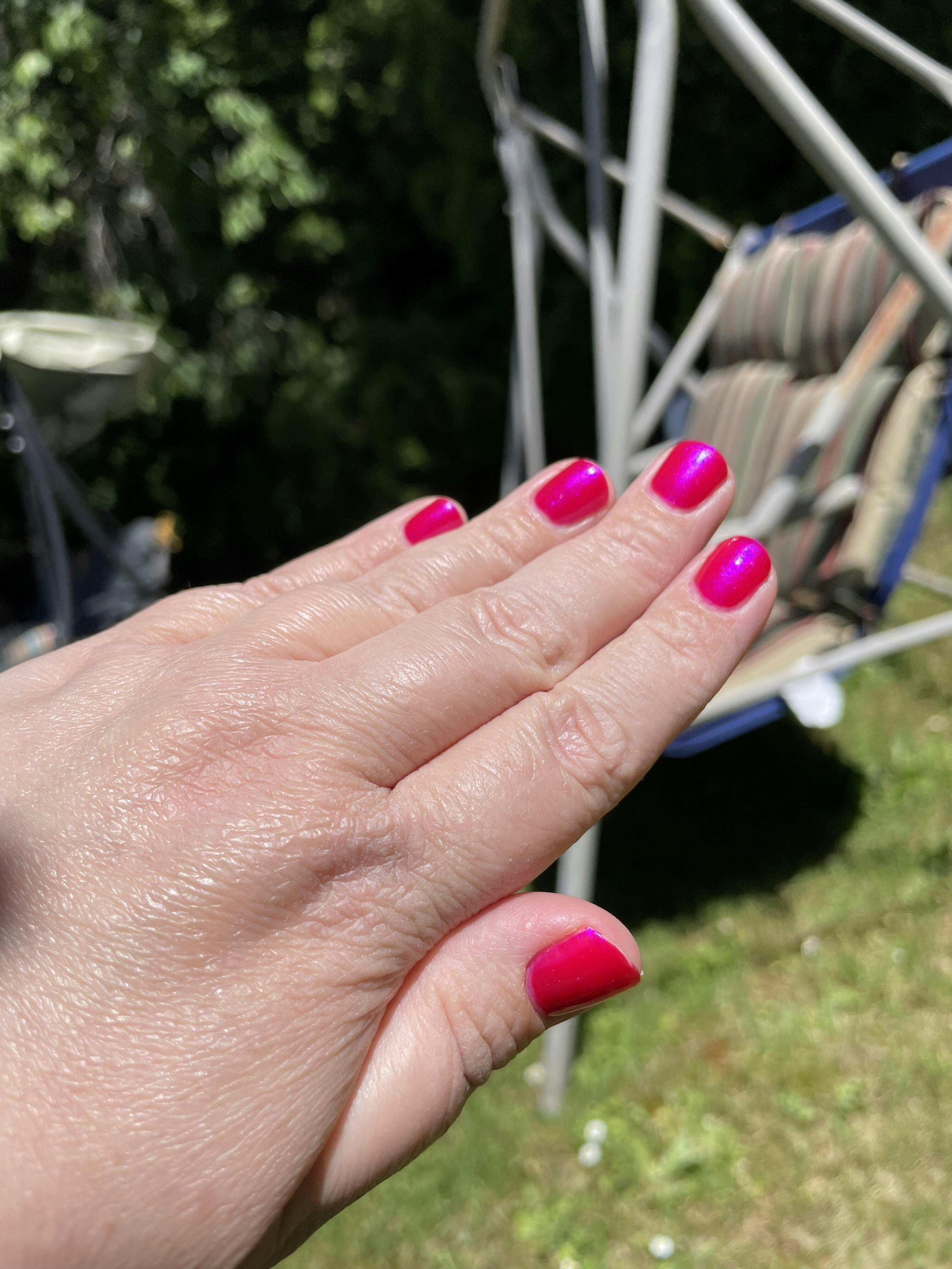 A magenta / red base with a blue / purple shifting aurora shimmer.