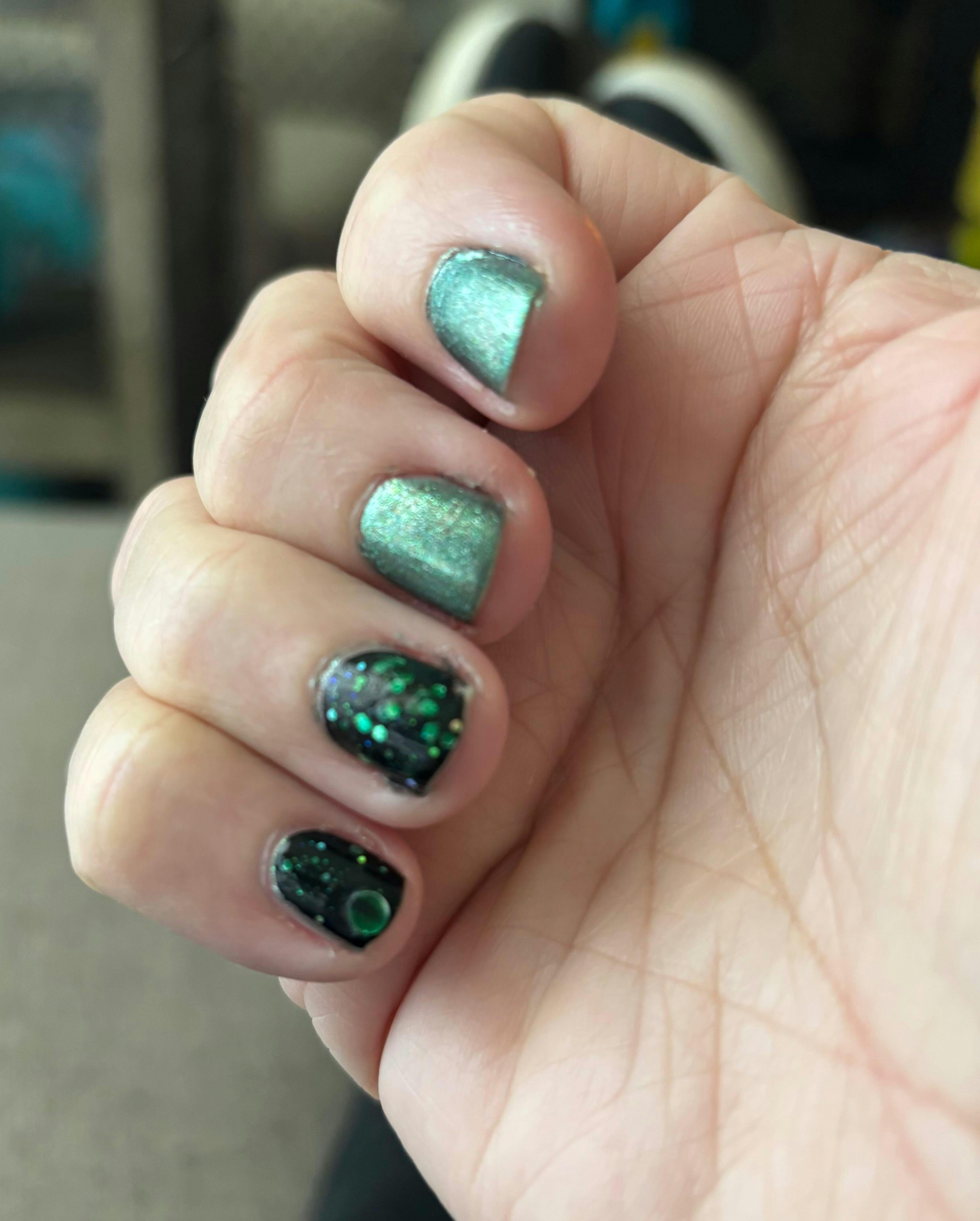 5 - Glitter placement / manipulation is necessary a lot of the time. Use a thick second coat so you can move them around easily.
