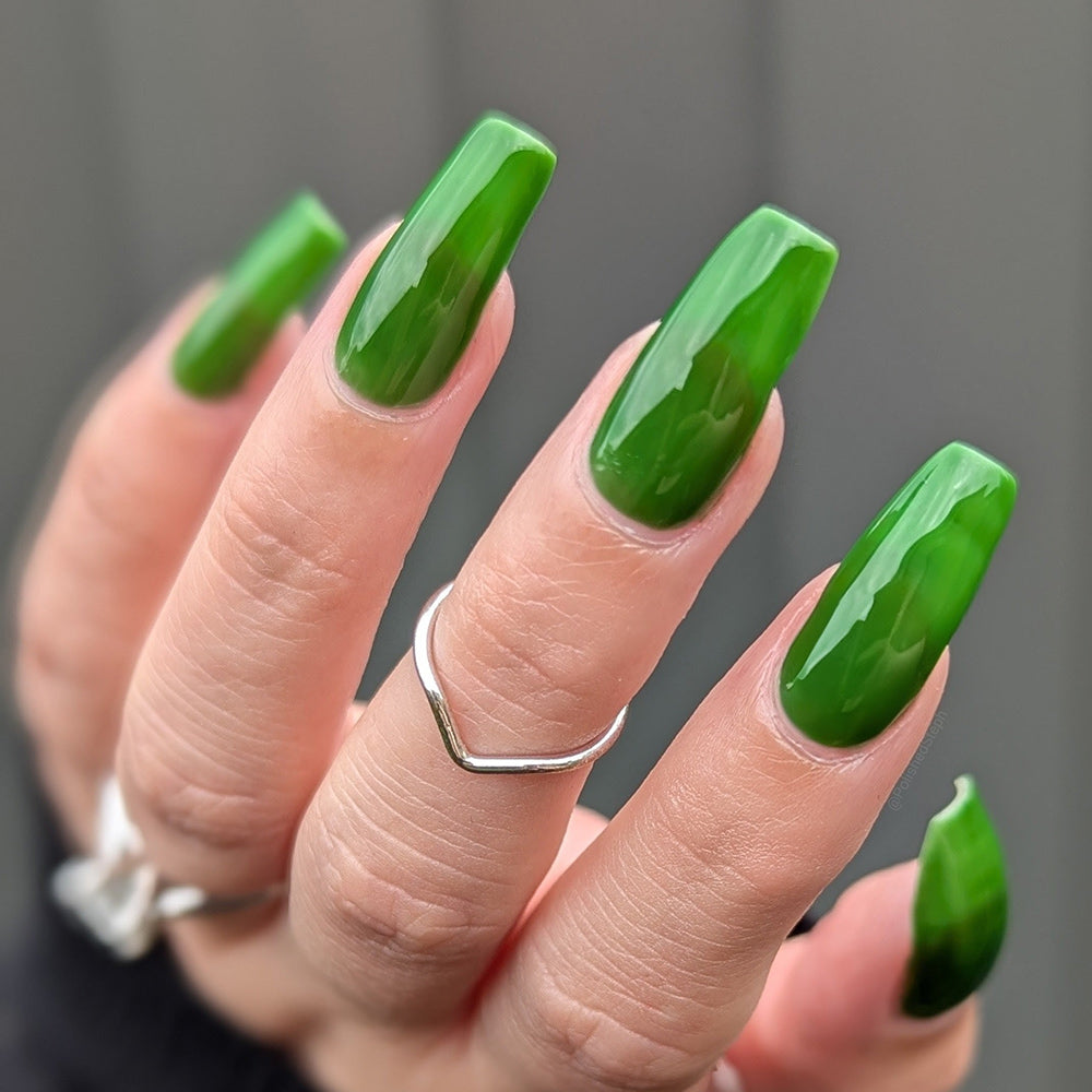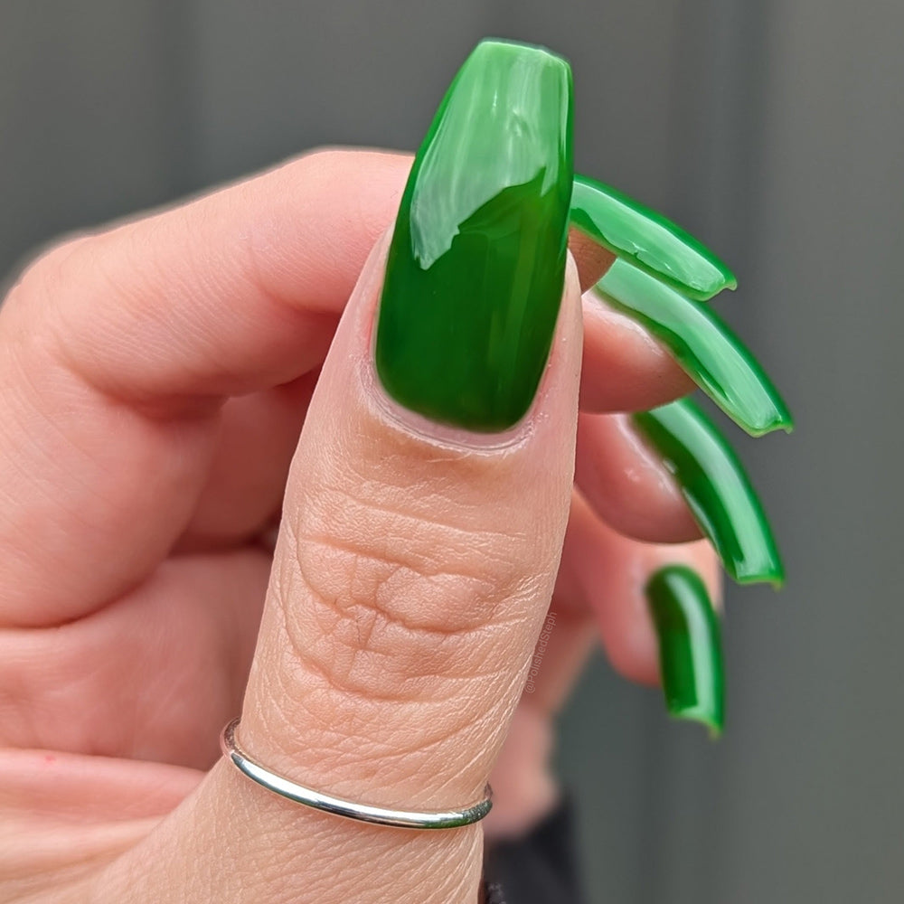 It has a buildable formula but it is not designed to be fully opaque, top coat recommended for a glossy finish.