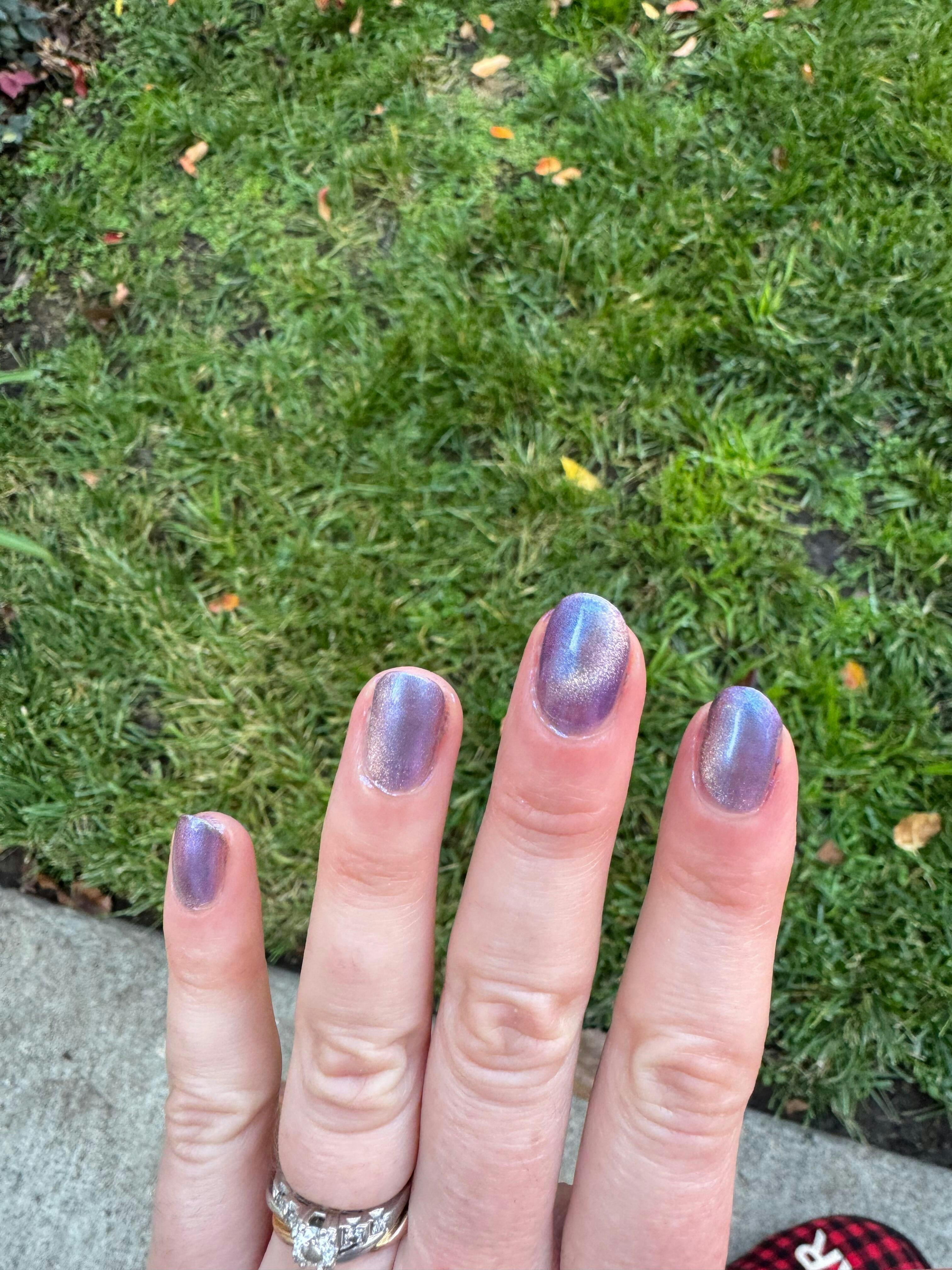 1. Magnetics are similar to holographic polishes in the way that the magnetic effect is much more prominent in bright lighting. In dull / low lighting you may not notice the magnetic effect much.