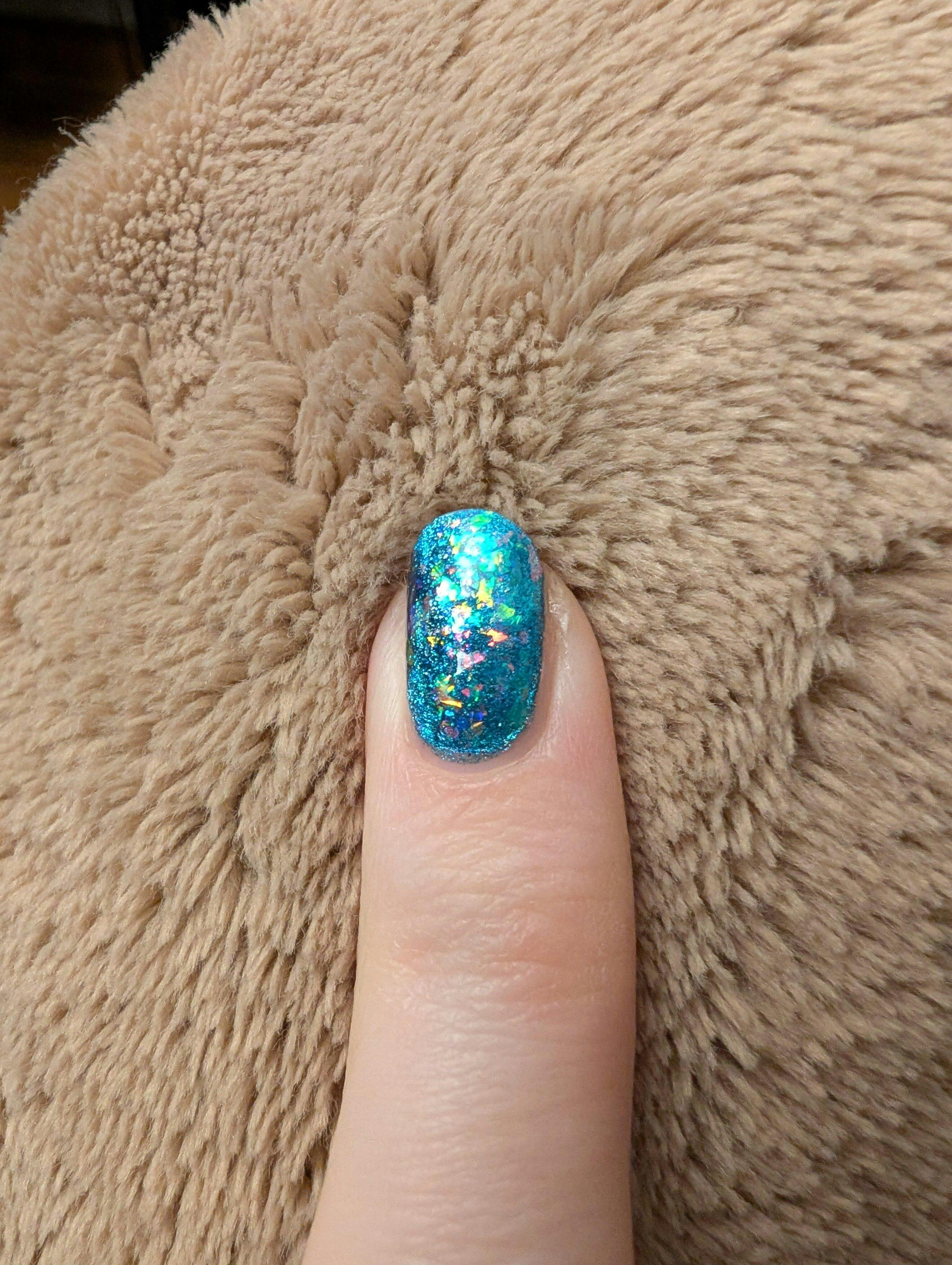 This flakie polish is designed to be worn over other colours, top coat recommended for a glossy finish.