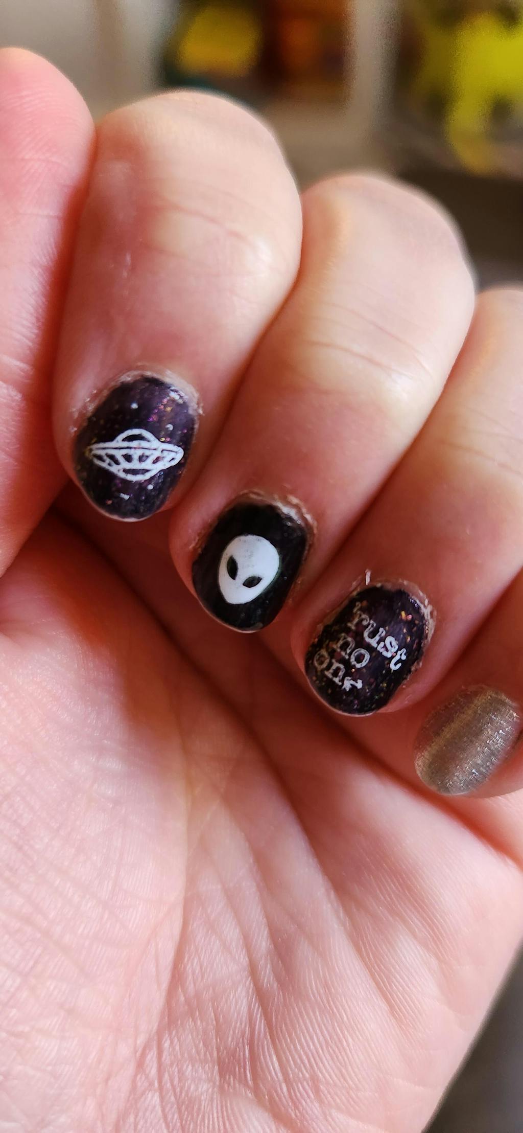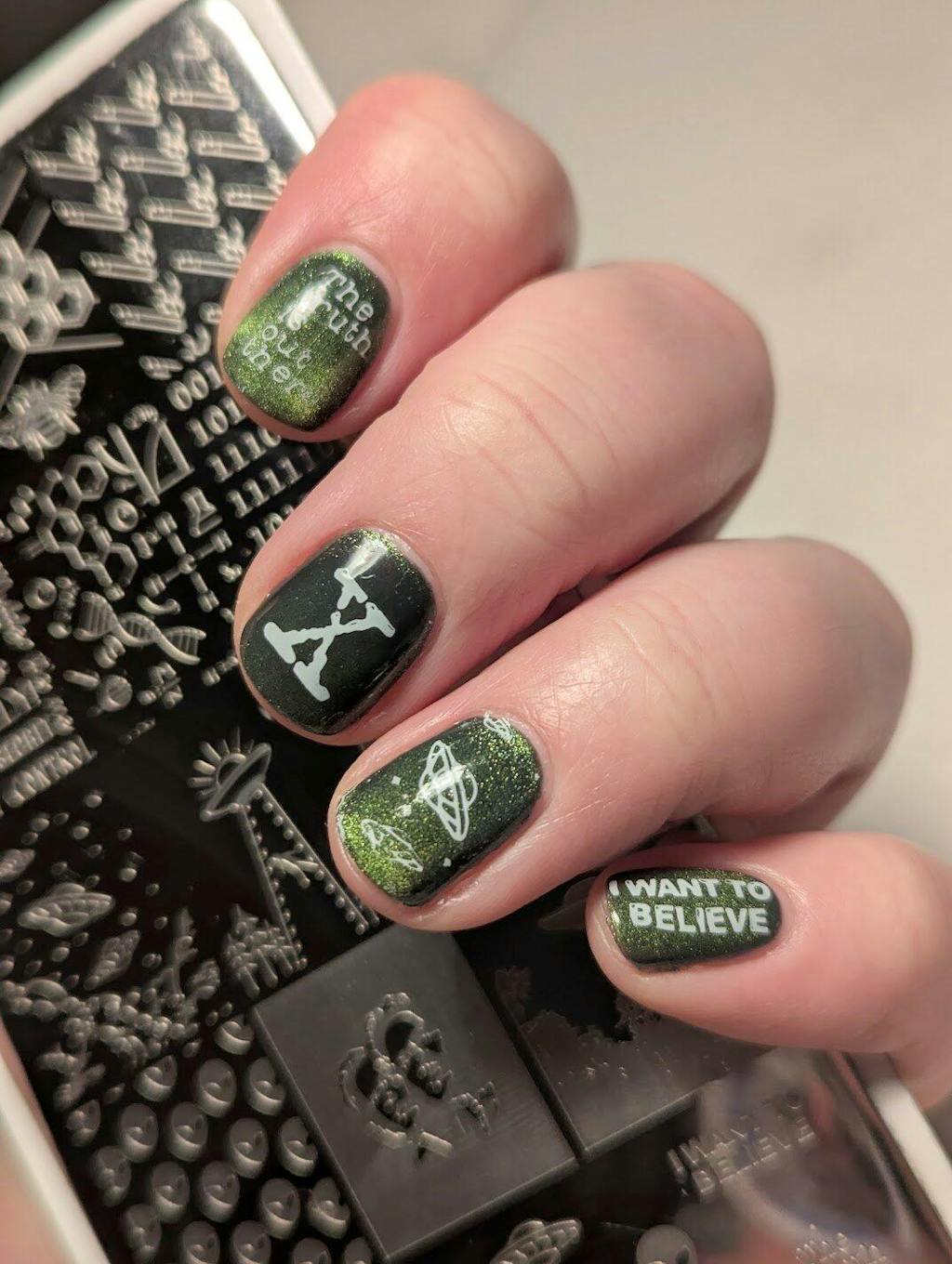 A NAIL STAMPING PLATE FILLED WITH SCI-FI / PARANORMAL RELATED IMAGES.