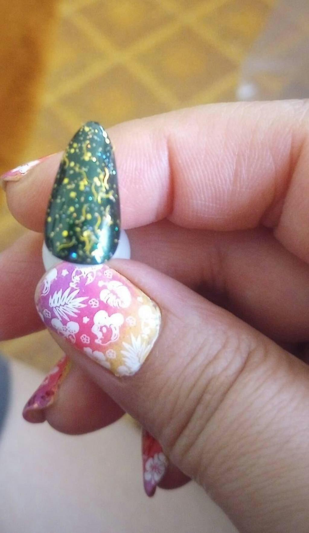 This glitter polish is designed to be worn over other colours, top coat recommended for a glossy finish.