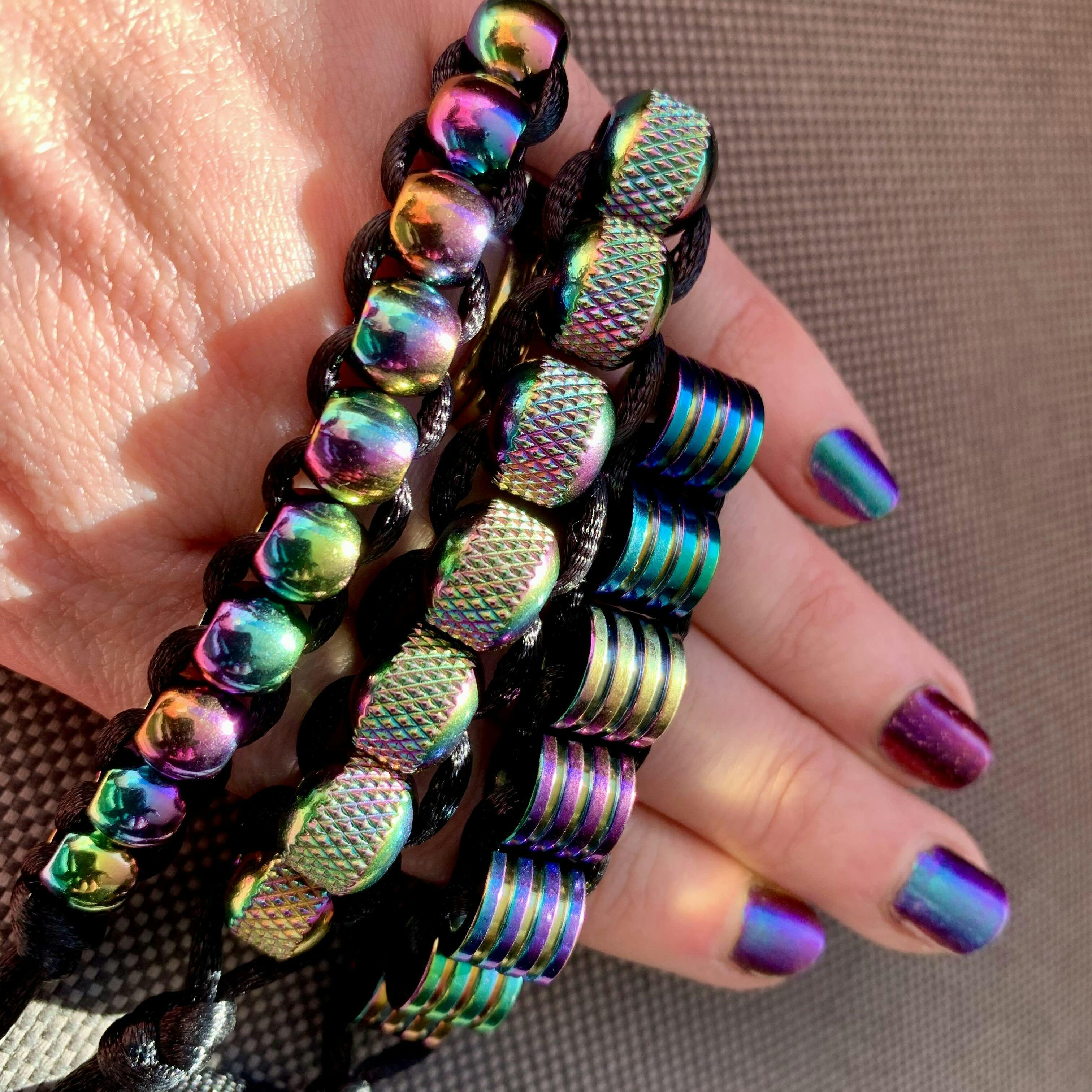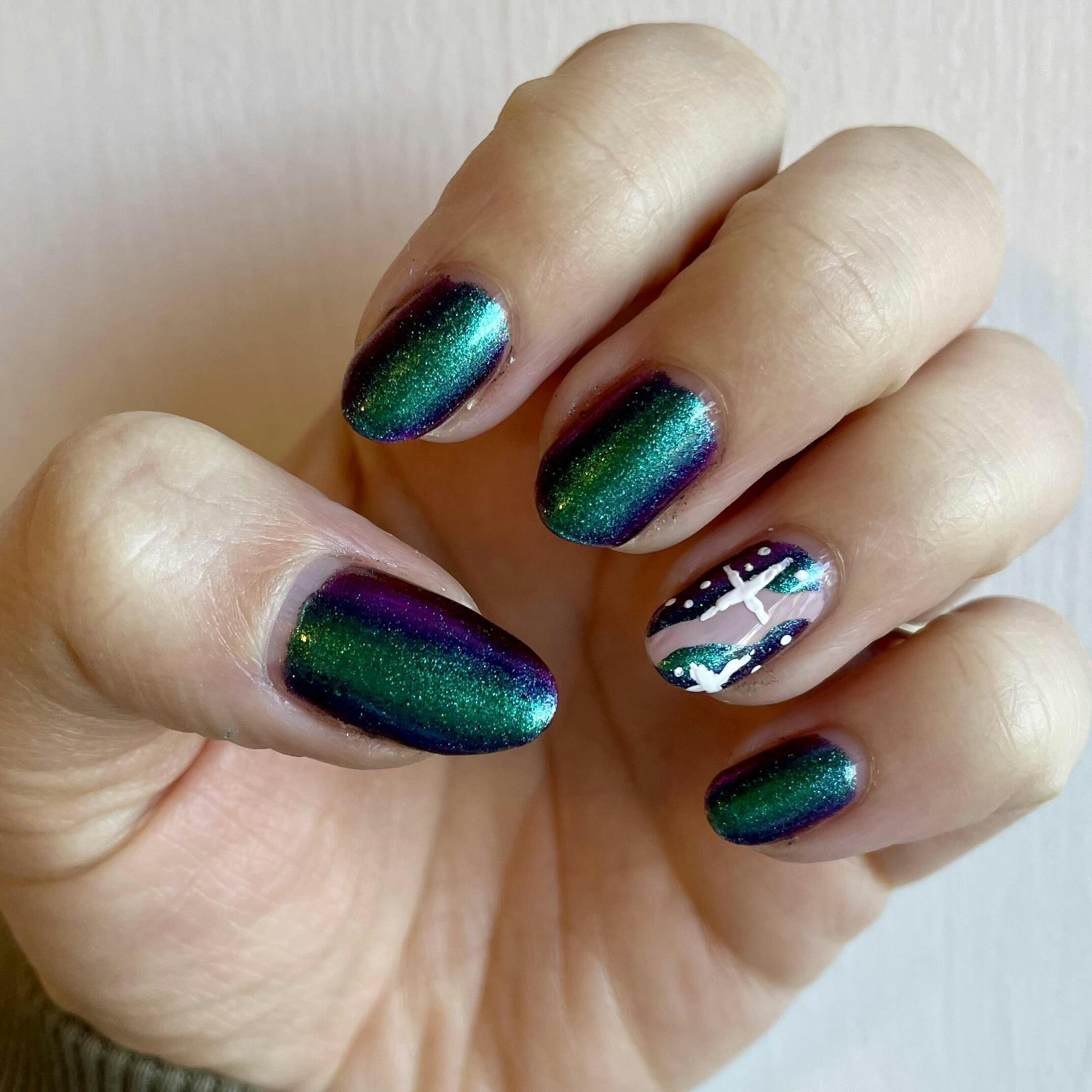 A large particle multichrome pigment that shifts from a green / blue /  purple / red-orange.