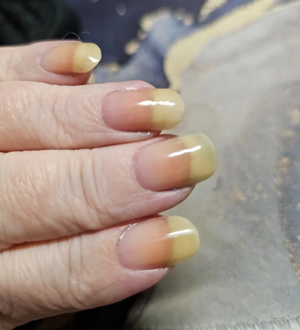 This base coat is slightly tinted white with a mostly translucent finish which brings a slight brightening effect to the nail.
